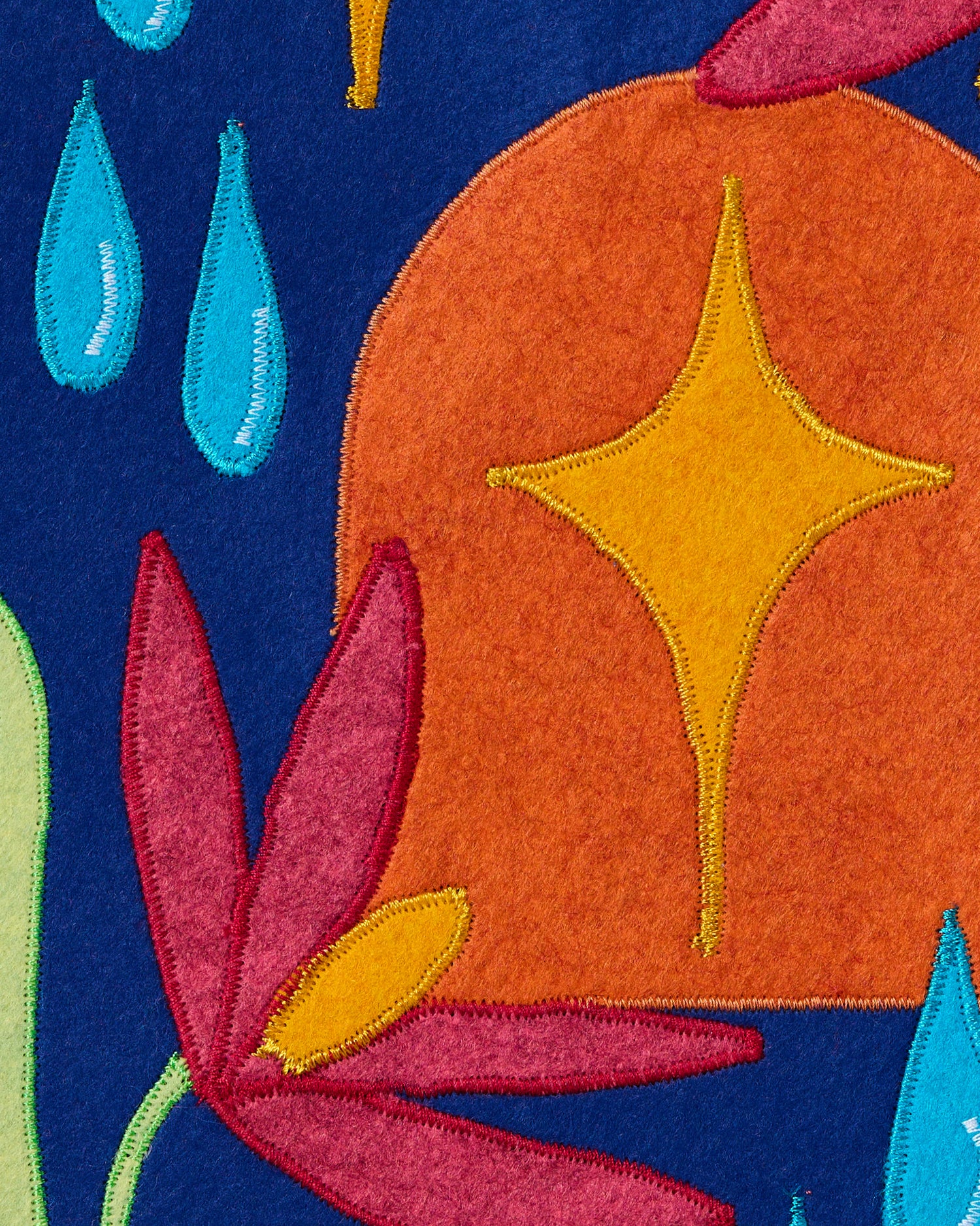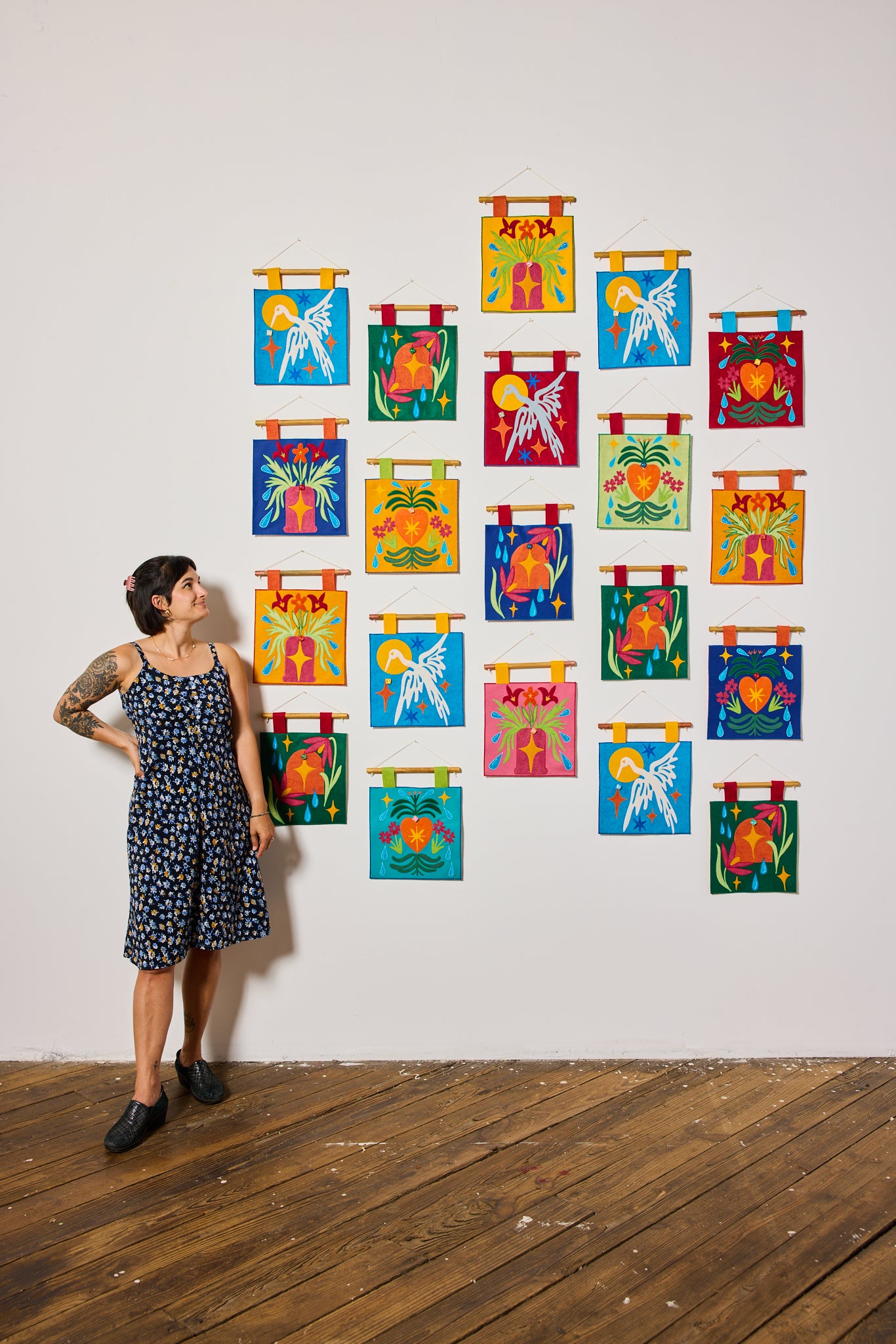 Each wall hanging is made with wool-blend felt and assembled using a traditional appliqué process practiced by quilters for hundreds of years.